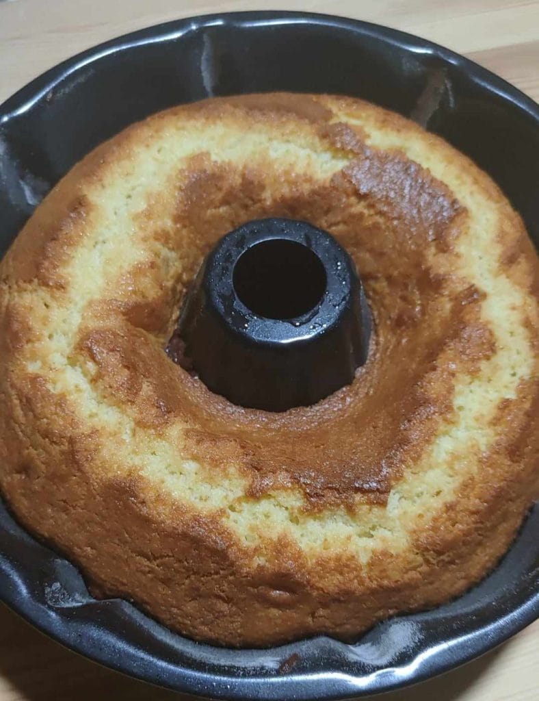 Il ne reste plus qu’à le transférer dans un moule à gâteau de 26 cm de diamètre, préalablement beurré et fariné.