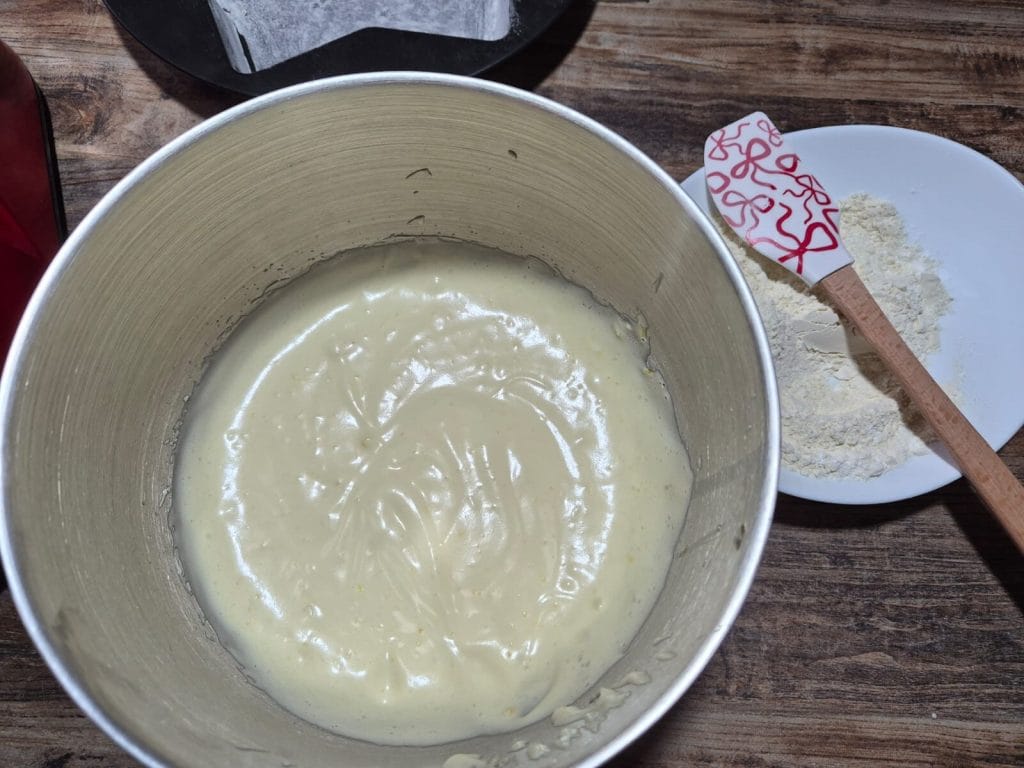 Ajoutez délicatement la farine, la fécule de pommes de terre et une pincée de levure préalablement tamisées.