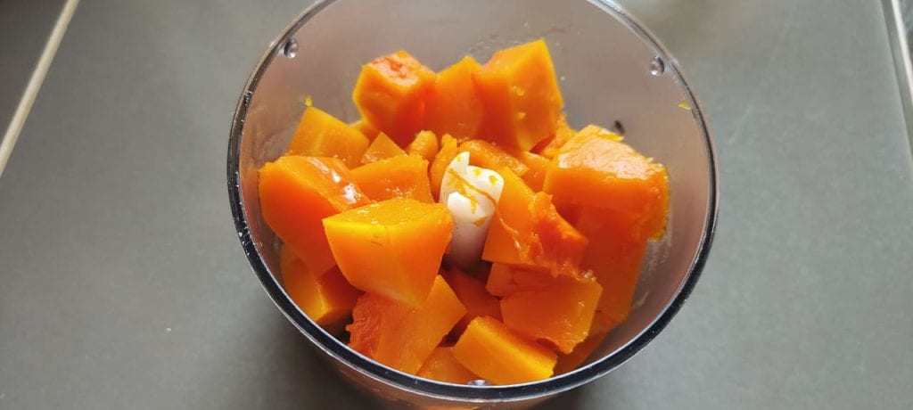 J’ai opté pour une cuisson à la vapeur, après quoi j’ai mixé la chair.