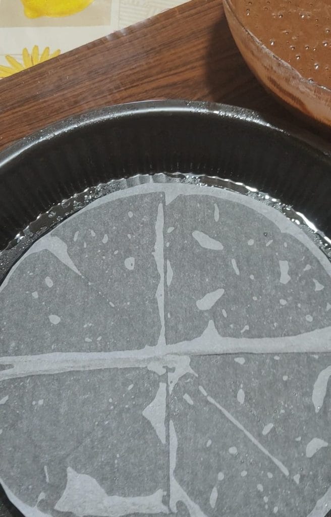 Un conseil : place un petit disque de papier sulfurisé au centre du moule. Cela rendra encore plus facile de détacher la base une fois cuite.