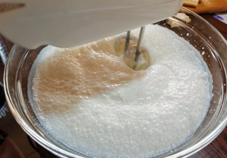 Continuez de cette manière jusqu’à ce que la crème soit bien montée.