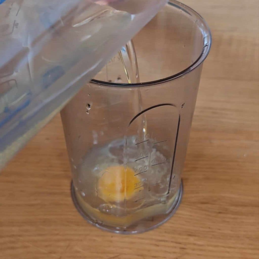 Cassez l’œuf dans le verre du mixeur plongeant.