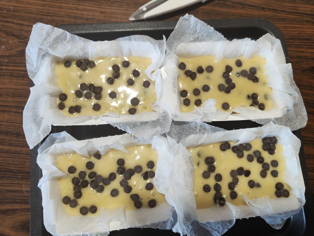 Je ne sais pas depuis combien de temps j’en avais envie. De simples mini cakes avec des pépites de chocolat à plonger dans le lait le matin.