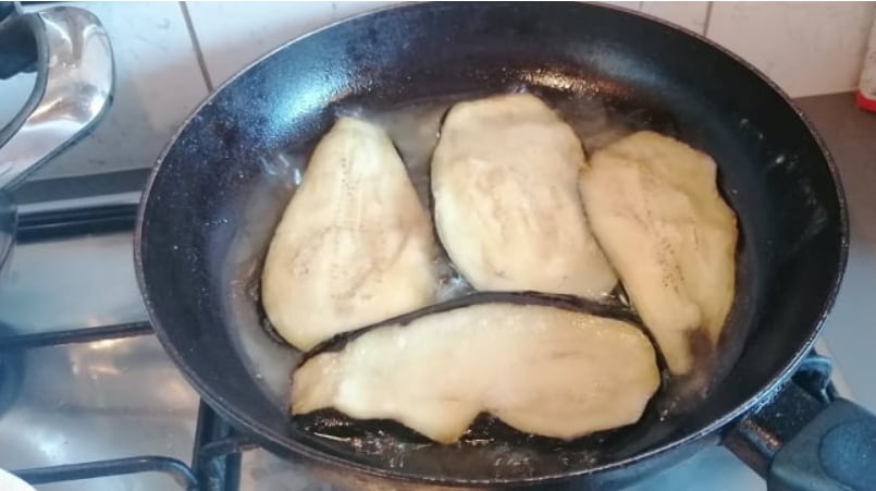 Par exemple, ma maman mettait entre chaque couche des tranches de jambon cuit et je fais de même. Tandis que la version de ma belle-mère, lorsqu’elle frit les (mulignane) comme on les appelle à Naples, plus adaptées pour ce type de préparation, sont celles longues et de couleur violette claire car elles sont plus douces et riches en eau. Elle les trempe dans l’œuf et le parmesan râpé avant de les frire et les recouvre rigoureusement de parmesan.