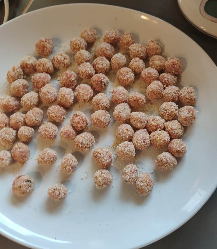 • Pendant que la sauce cuit, préparons les boulettes de viande.