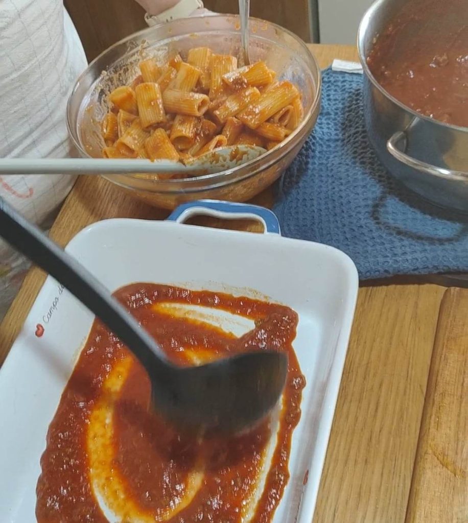 Ce que j’adore dans ces pâtes au four, c’est la croûte de pâtes croustillante qui se forme dessus, mon mari Massimiliano demande toujours cette partie.