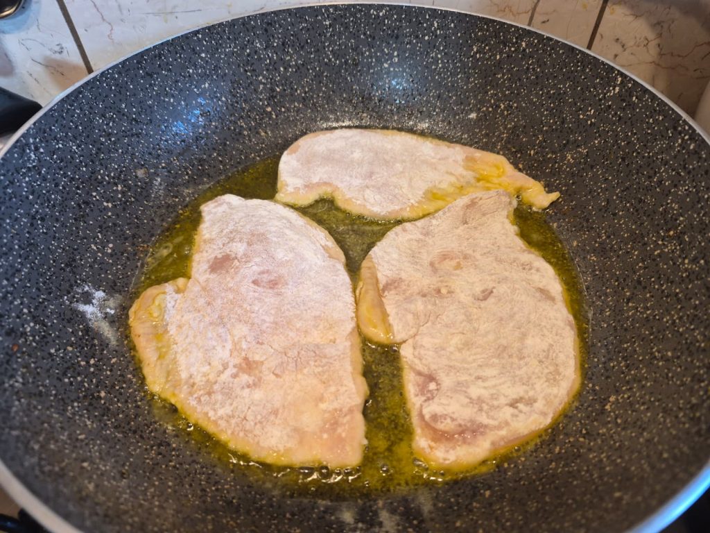 Dans une grande poêle avec un filet d’huile, faites-les dorer à feu vif des deux côtés. Lorsqu’elles sont bien dorées, déglacez avec un demi-verre de vin blanc .