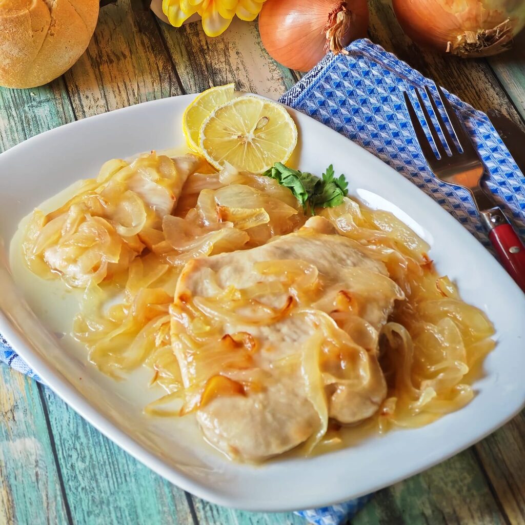 La Poitrine de poulet aux oignons. Un deuxième plat succulent et raffiné, très facile et rapide à préparer : un plat parfait de dernière minute !