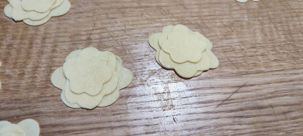 Ensuite, la pâte est découpée et façonnée pour donner vie à ces merveilleuses roses de Mardi Gras.