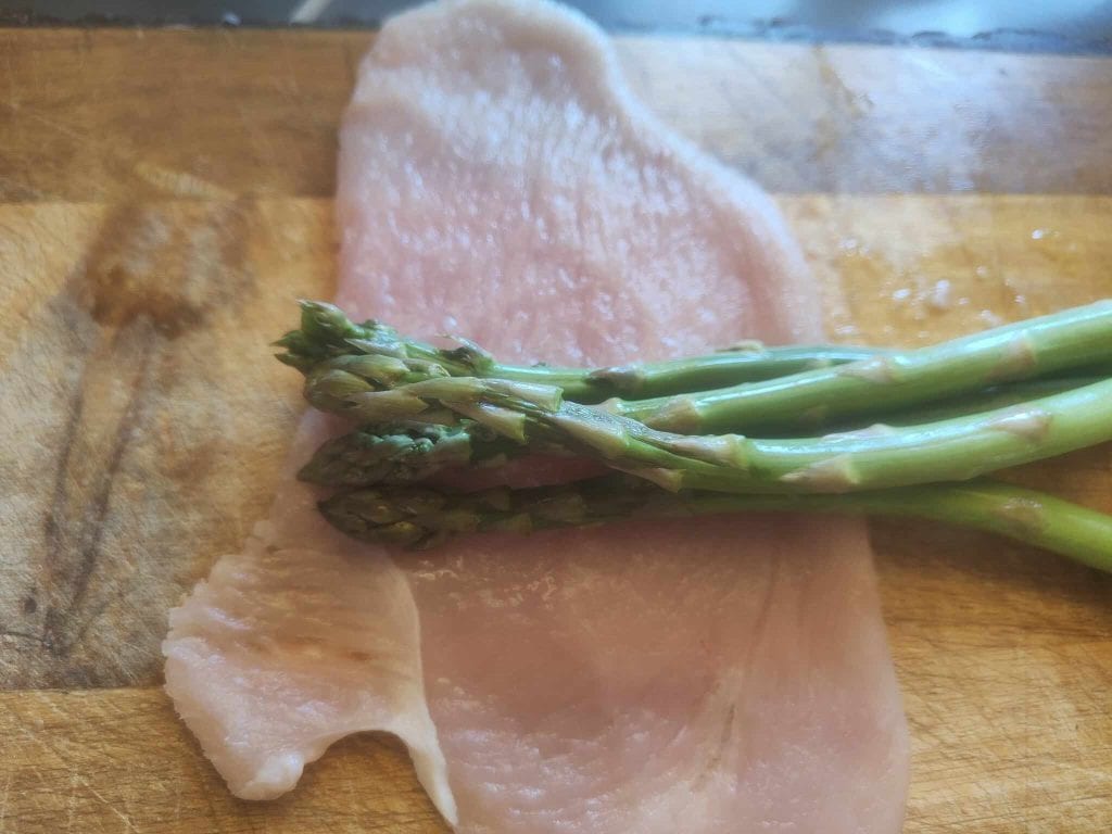 À ce stade, commencez à préparer les roulades, en tenant compte que sur chaque filet de dinde doivent être ajoutés 4 ou 5 asperges.