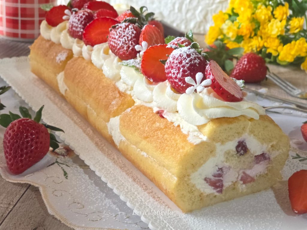 Roulé de biscuits aux fraises — un dessert sans cuisson prêt en 15 minutes qui fait pâtisserie, bon, facile et spectaculaire, parfait pour toutes les occasions.