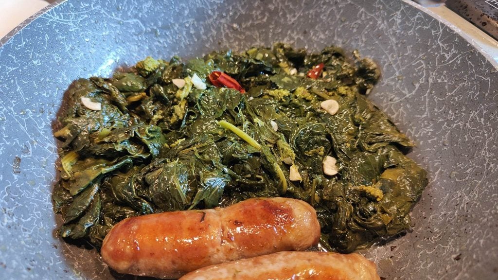 À la fin de la cuisson, ajoutez les saucisses aux friarielli et faites cuire pendant quelques minutes pour bien mélanger les saveurs.