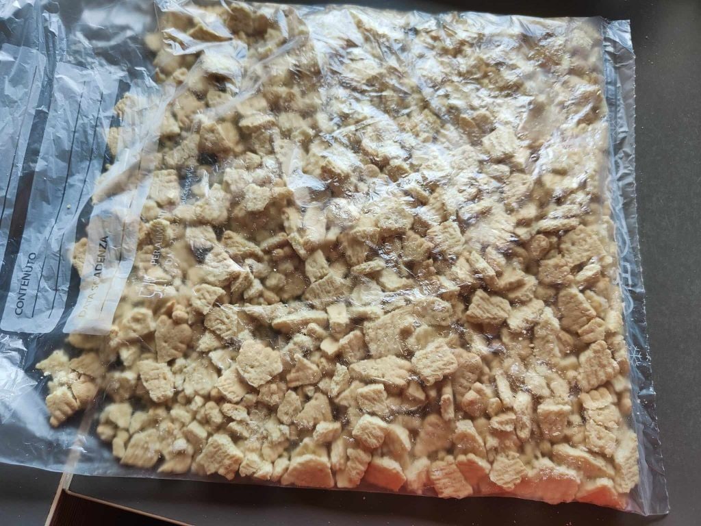 Dans un bol assez grand, mélange le chocolat fondu, l’huile, les noisettes (entières ou légèrement concassées selon votre goût), la boisson végétale et enfin les biscuits émiettés. Mélange bien.
