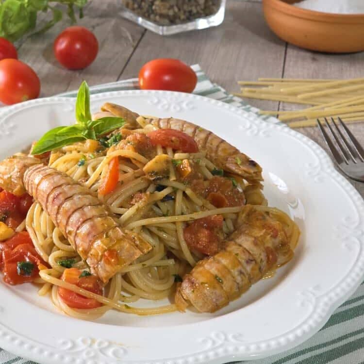 Spaghetti aux squilles à la sauce simple et savoureuse.
