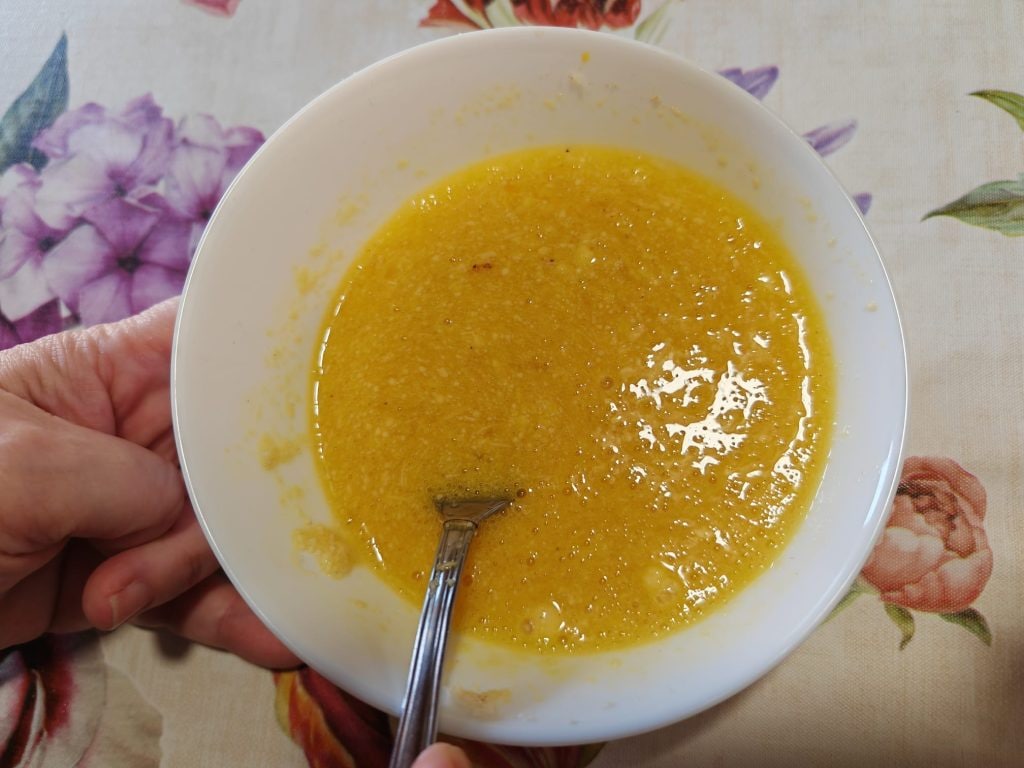 Porte le bouillon de viande à ébullition et verse le mélange en fouettant énergiquement, si tu veux obtenir un mélange très fin. Sinon, mélange avec une cuillère pour obtenir un mélange avec des morceaux plus gros.