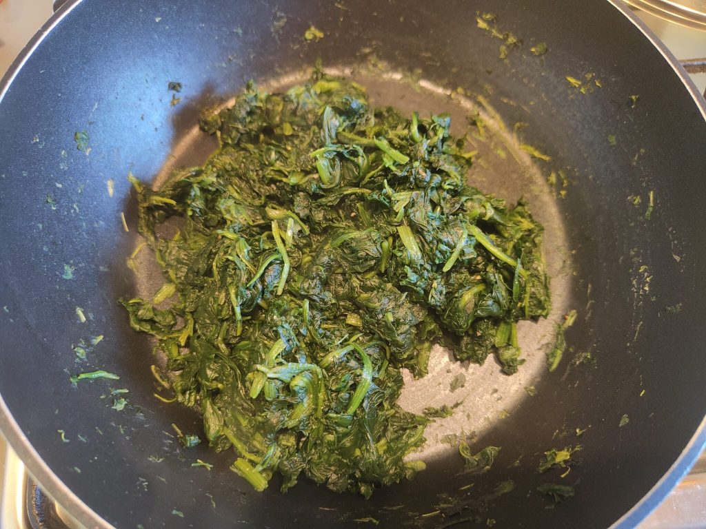 J’ai choisi les épinards car ma famille les préfère, mais on peut aussi utiliser de la chicorée, des blettes, des pousses de navet ou ces mélanges de légumes verts disponibles dans tous les supermarchés, qu’ils soient frais ou surgelés.