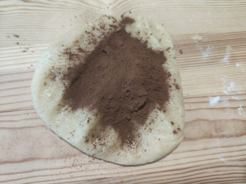 Dans la seconde partie, incorporez les 15 grammes de cacao amer, travaillez-la encore jusqu’à ce qu’elle soit bien incorporée et mettez-la de côté.