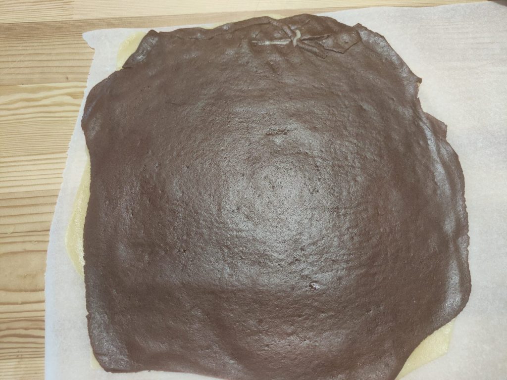 Répétez avec une autre feuille de papier sulfurisé pour la pâte sablée au cacao et formez un rectangle.