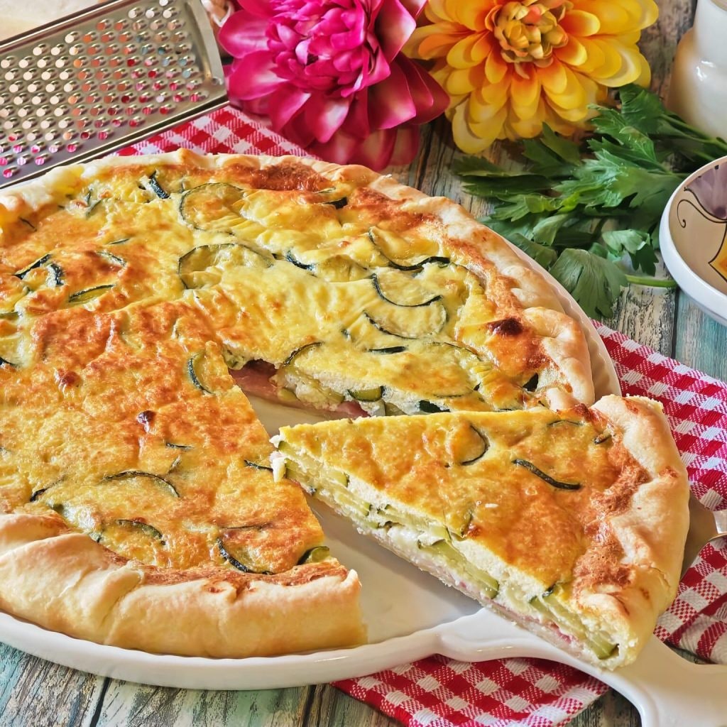 La tarte avec courgettes et jambon est une recette simple et délicieuse, idéale pour un dîner rapide en famille ou entre amis. Les tartes salées sont toujours des plats parfaits « sauvedîner », elles se préparent en peu de temps et sont très appréciées de tous.