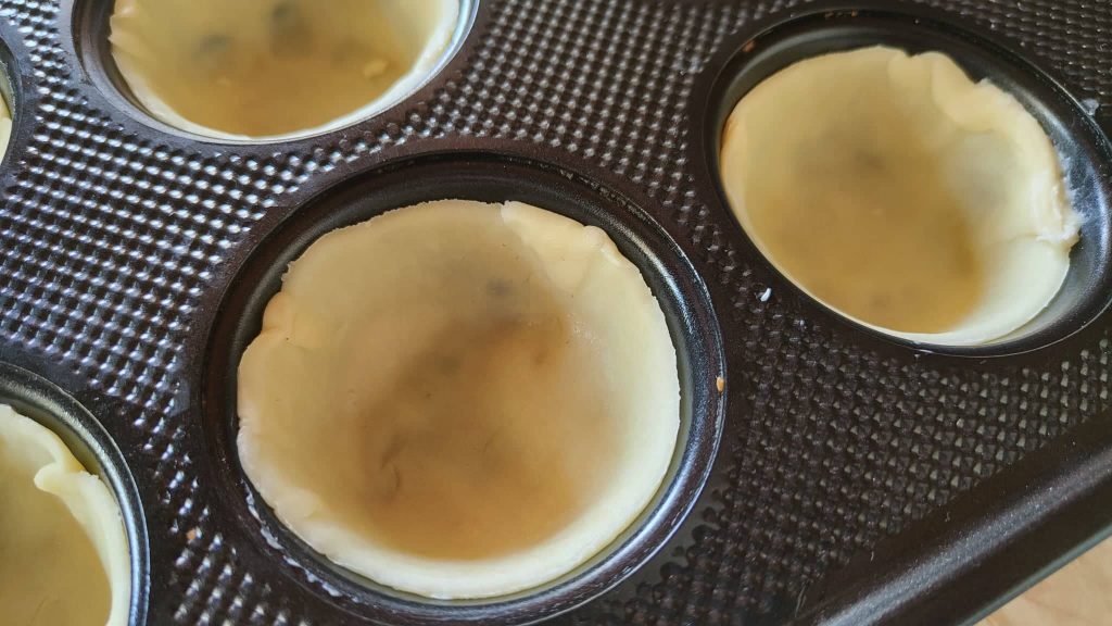 Avant d’enfourner, placez les coques de pâte déjà formées dans les moules au réfrigérateur pendant 10-15 minutes. Mettre la pâte bien froide dans le four chaud aide à maintenir les bords définis et une forme parfaite.