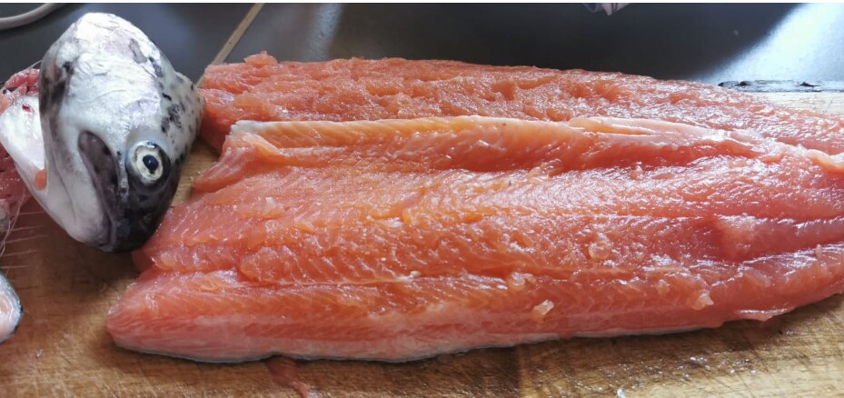 À ce stade, la truite saumonée peut déjà être cuisinée, mais on peut aussi procéder au filetage.