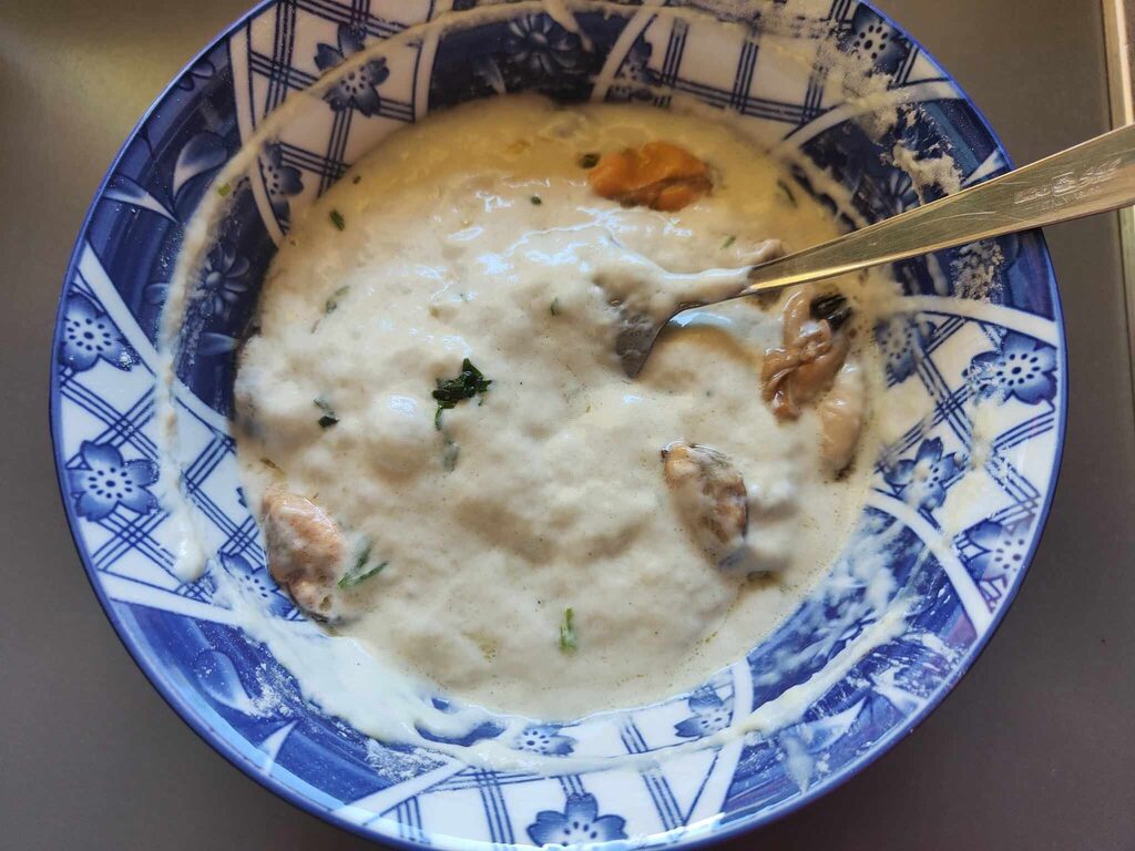 Un conseil : ne jetez pas l’eau des mollusques, une fois froide elle peut être utilisée pour la pâte, évidemment si vous l’utilisez, n’ajoutez pas de sel à la pâte, ou juste une pincée, car ce liquide est déjà salé.