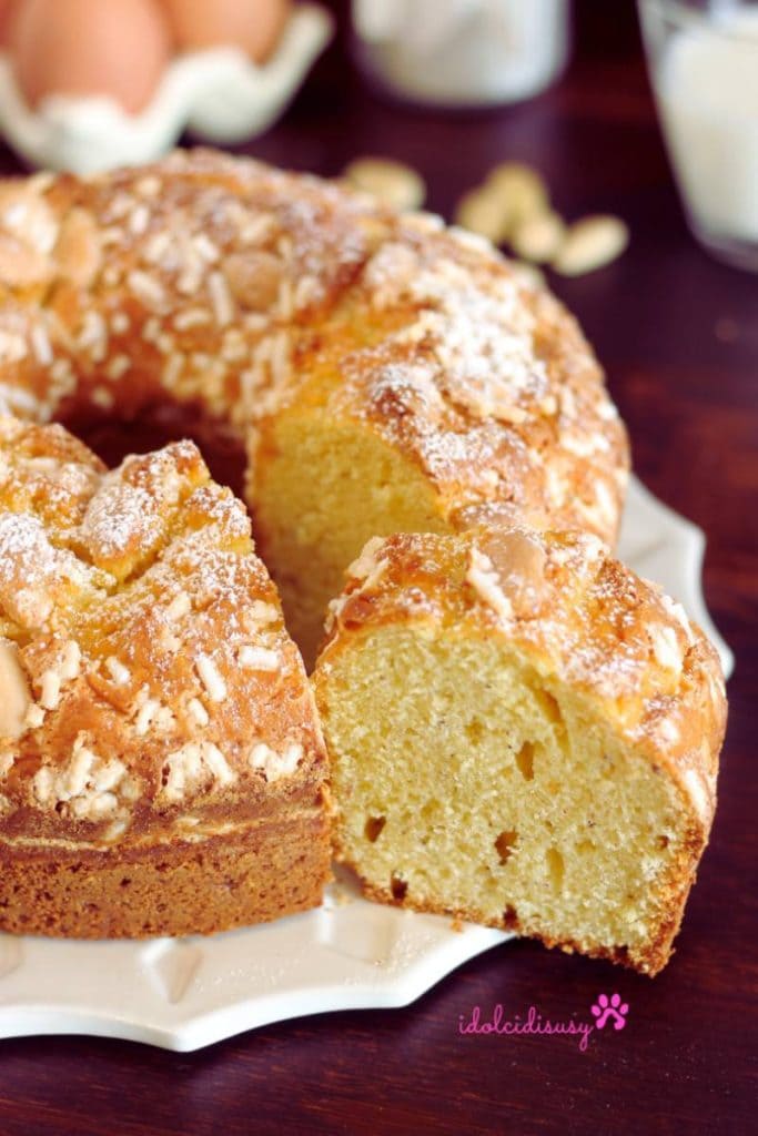 La couronne moelleuse au yaourt et aux amandes est un dessert simple et délicat, parfait pour le petit-déjeuner de toute la famille et pour le goûter des plus petits. Elle se prépare sans beurre et sans lait, utilisant de l’huile de graines et du lait d’amandes : une pâte légère mais incroyablement moelleuse, grâce au yaourt.