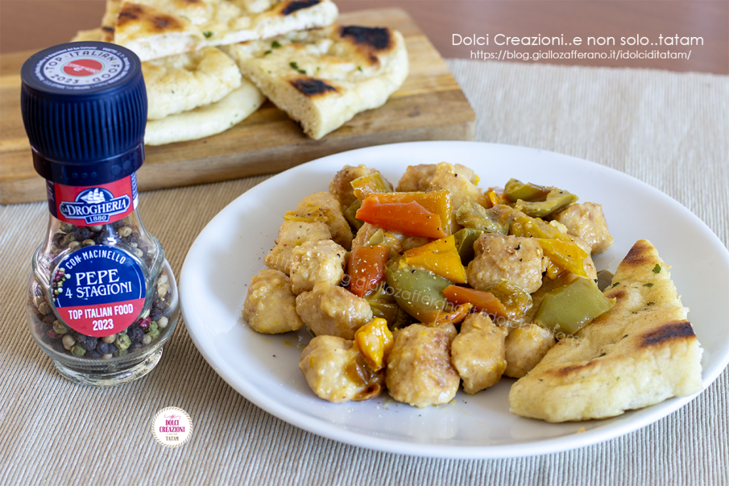 À la fin de la cuisson, cela prendra environ 15 minutes, les poivrons doivent être tendres mais pas en purée. Ajuster le sel et le poivre si nécessaire et servir à table ces savoureux et très tendres Morceaux de poulet avec poivrons à la poêle.