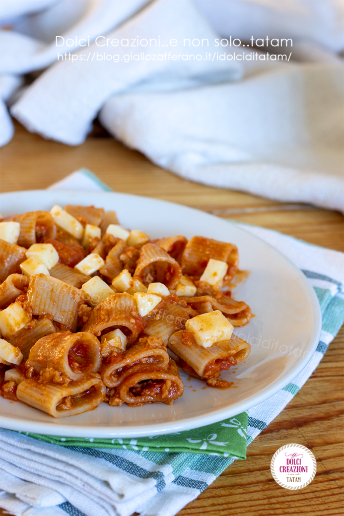Pâtes au ragoût de poulet et mozzarella, un plat principal savoureux et délicieux mais aussi léger car préparé avec un ragoût de viandes blanches qui sont les plus maigres, idéal donc pour ceux qui sont au régime et ne veulent pas renoncer au goût, mais aussi parfait pour les enfants.