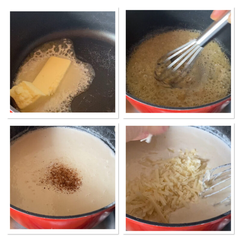 Vous devez obtenir une béchamel plutôt épaisse, mais si elle vous semble trop fluide, ne vous inquiétez pas : en refroidissant elle devrait un peu se raffermir.