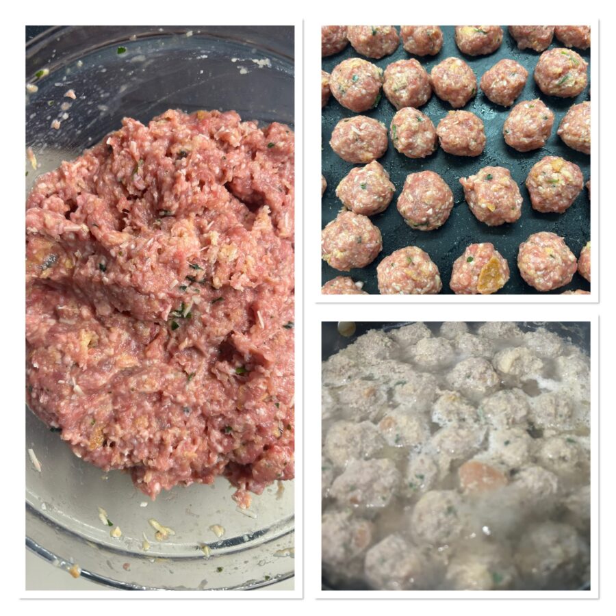 Les préparer est super simple : il suffit de mélanger la viande hachée, le pain rassis ramolli, des œufs, du fromage râpé et un peu de persil et, une fois obtenu un mélange homogène, former des petites boules de la taille d’une noisette ou un peu plus grosses qui seront plongées dans le bouillon bouillant et cuites doucement. Cuites ainsi, les boulettes dans le bouillon restent moelleuses et savoureuses, et le bouillon chaud les rend encore meilleures ; et si vous aimez les recettes de bouillon et le comfort food, vous pouvez aussi essayer la Pastina dans le bouillon avec boulettes sur mon blog.