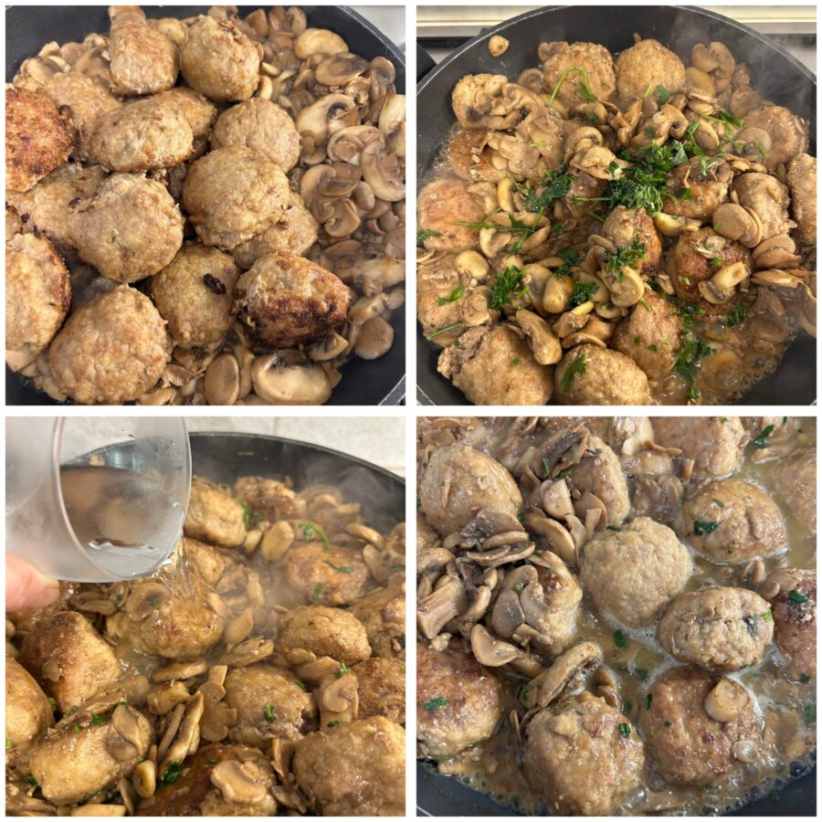 Les boulettes en sauce avec des champignons sont délicieuses juste après leur préparation, mais si vous devez les préparer à l’avance, réchauffez-les en ajoutant un peu d’eau avant de les servir.
