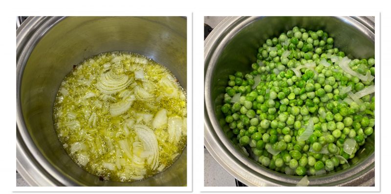 • Pour préparer les boulettes en sauce blanche aux petits pois, épluchez et émincez un oignon puis faites-le revenir dans de l’huile d’olive.
