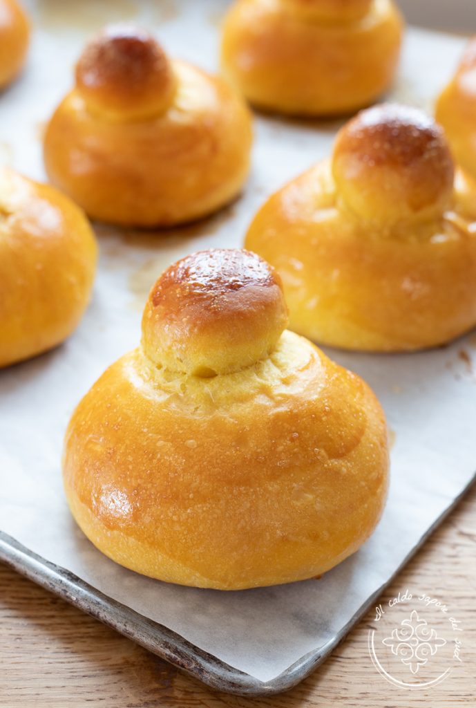 Brioche au tuppo au safran sans saindoux ni beurre, et aussi brioches au tuppo sans œufs. Si vous cherchez la recette originale des brioches col tuppo, je suis désolée de vous décevoir, mais elle n’existe pas. Dans ma longue vie de Sicilienne, élevée entre granita à l’amande et brioches col tuppo, je peux vous assurer que je n’ai jamais mangé deux brioches identiques : j’en ai mangé beaucoup, parfois très bonnes, parfois moins, mais jamais pareilles. Au fil des années, j’ai expérimenté et testé plusieurs recettes et certaines ne m’ont jamais déçue. Aujourd’hui je veux vous parler d’une version un peu particulière de brioches au tuppo au safran, sans œufs, sans saindoux ni beurre, qui reste pourtant très moelleuse, comme mes Brioches ultra moelleuses à la pâte de pommes de terre. Dans de nombreuses régions de Sicile il est courant d’ajouter du safran à la pâte des brioches, ce qui, en plus d’apporter un bel arôme, remplace la couleur apportée par les jaunes d’œuf, les rendant en outre moins grasses et plus légères. En ajoutant donc le safran je n’ai rien inventé ; ce que j’ai fait, c’est rendre mes brioches au tuppo un peu plus saines et végétariennes, en remplaçant la graisse animale par de l’huile végétale et en ajoutant un peu de fromage à tartiner dans la pâte pour qu’elles restent moelleuses plus longtemps. En pratique, j’ai réalisé des brioches moelleuses et parfumées, sans œufs, beurre ni saindoux, tout en obtenant une saveur exceptionnelle et un moelleux enviable, comme mes Tresses siciliennes au sucre sans œufs ni beurre. Je vous emmène maintenant en cuisine pour vous expliquer la recette des brioches au tuppo au safran ; je précise aussi que vous pouvez pétrir les brioches avec un robot de cuisine comme mon Mambo CooKing Total Gourmet Robot da cucina CECOTEC, ou alternativement avec un robot pâtissier. Pétrir à la main est un peu plus compliqué, mais avec de la patience c’est possible. Avant d’aller en cuisine, si vous voulez rester à jour sur toutes mes recettes, vous pouvez suivre ma page Facebook (ici) et mon profil Instagram (ici).