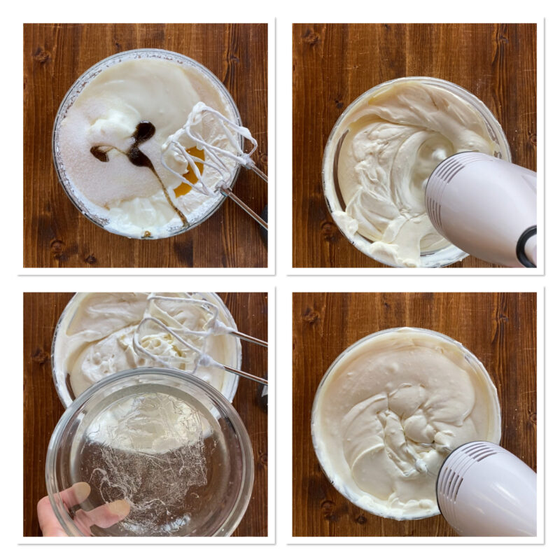 Avant de commencer, place la cuve où tu comptes travailler les ingrédients au congélateur et assure-toi que la crème, le mascarpone et le yaourt soient bien froids.