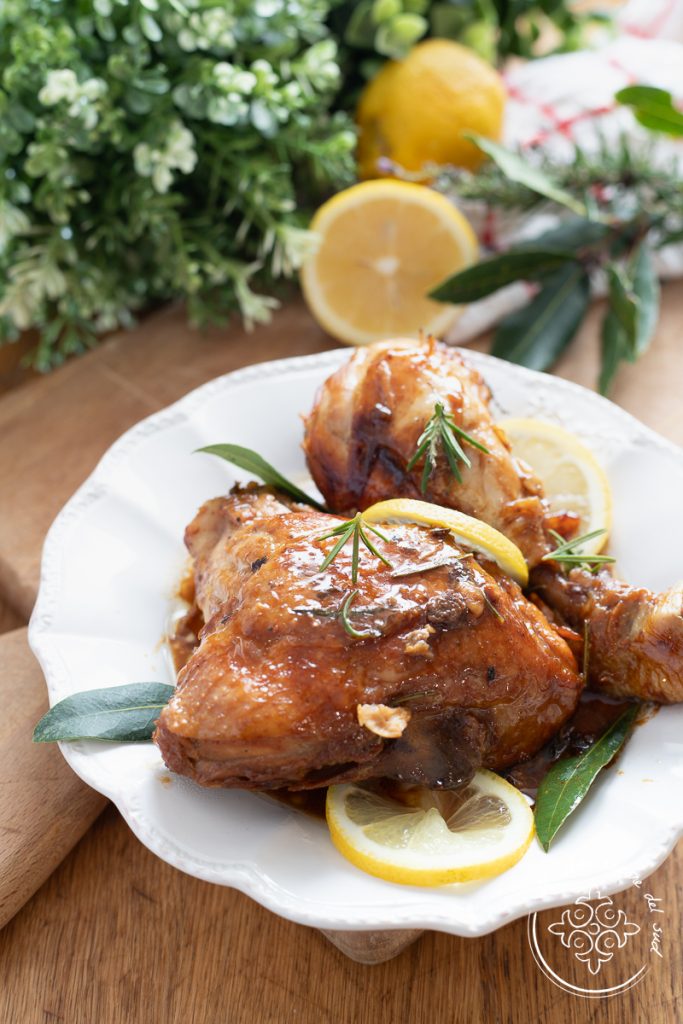 Cuisses de poulet glacées au miel et au citron, cuites à la poêle. Les cuisses de poulet glacées au citron et miel sont une super idée à mettre sur la table quand vous ne savez pas comment cuire le poulet, une recette gourmande comme le Poulet à la cacciatora, le Poulet à la méditerranéenne à la poêle ou le Poulet aux champignons. C’est une recette économique, savoureuse et délicieuse, adaptée à toute la famille. Les cuisses de poulet au miel et citron glacées sont un des plats principaux que mes enfants préfèrent, et quand je les prépare à la maison c’est toujours la fête, d’autant plus que personne ne résiste à l’envie de faire la petite trempette dans la sauce gourmande qui les accompagne ! Et s’il est vrai que le poulet au four avec pommes de terre rôti est un incontournable de la cuisine italienne, si vous ne voulez pas allumer le four il existe aussi plein d’autres recettes qui permettent de cuisiner le poulet à la poêle en économisant de l’électricité, comme les Pilons de poulet à la bière à la poêle ou le Poulet rôti à la poêle, ou encore le poulet au miel que nous allons cuisiner ! Vous voulez préparer ces cuisses de poulet glacées au miel et au citron vous aussi ? On file en cuisine alors, mais avant de se mettre aux fourneaux je vous rappelle que si vous voulez rester informés de toutes mes recettes, vous pouvez suivre ma page Facebook (ici) et mon profil Instagram (ici).