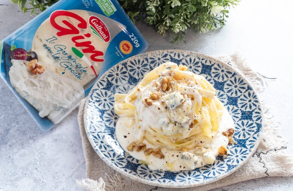 Fettuccine à la crème de gorgonzola D.O.P et noix. Je vous ai déjà dit que j’adore beaucoup le gorgonzola, mais je ne vous ai pas dit que je ne suis pas la seule ! Chez nous, le Gorgonzola D.O.P ne manque jamais : mon père en raffolait, ma mère en achetait toujours et chez moi c’est pareil : mes enfants et moi en sommes fans, donc je l’achète tout le temps pour l’utiliser un peu partout, de la pizza, aux plats de pâtes comme les gnocchis de pommes de terre violettes à la crème de gorgonzola ou des plats principaux comme les petits gratins de courge et de pommes de terre au gorgonzola, et même pour le déguster au dîner avec une bonne tranche de pain maison. Il y a quelques jours, ma sœur est venue me voir, on ne s’était pas vues depuis un moment et je lui ai demandé de rester déjeuner ; je n’avais pas grand-chose au frigo à part mon gorgonzola préféré, des fettuccine fraîches et peu d’autres choses, mais dans le placard j’avais des noix et de la crème : bref, ça suffisait, j’avais tous les ingrédients pour un bon premier plat gourmand !! Les filles, ma sœur est restée déjeuner et, en compagnie de mes enfants, nous avons profité d’un beau repas riche et savoureux, en préparant des fettuccine à la crème de gorgonzola D.O.P très onctueuses et délicieuses ! Vous voulez les essayer aussi ? Allons en cuisine, je vous raconte la recette, mais avant je vous rappelle que si vous voulez rester à jour sur toutes mes recettes vous pouvez suivre ma page Facebook (ici) et mon profil Instagram (ici).