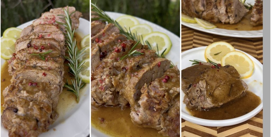 Aujourd’hui nous allons préparer ensemble le filet mignon de porc au citron et miel avec moutarde et baies de poivre rose et vous verrez que cette recette simple et rapide pour un rôti savoureuse vous permettra de préparer un plat principal de viande succulent et délicieux, qui séduira tout le monde dès la première bouchée. Le jus de cuisson au citron, moutarde et miel enrobera la viande en la glaçant et la rendra particulièrement savoureuse et délicieuse, même en la cuisant à la poêle. Prêts à découvrir la recette ? Allons en cuisine, mais avant de nous mettre aux fourneaux, je vous rappelle que si vous voulez rester informés des nouvelles recettes, vous pouvez suivre ma page Facebook et mon profil Instagram et que vous trouverez ici 10 plats principaux de Noël qui vous plairont sûrement ! Si vous aimez aussi les plats principaux de viande encore plus raffinés, voici la recette du roast beef et celle du filet à la Wellington.