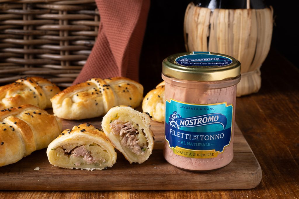 Filets de thon en croûte de pâte feuilletée et pommes de terre, avec du thon au naturel. La recherche de l’apéritif rapide et gourmand est le mood du moment : Noël et le Nouvel An approchent et on veut absolument préparer l’apéritif parfait, celui qui plaît à tout le monde, mais qui en même temps, avec toutes les choses à cuisiner, nous prenne le moins de temps possible. C’est justement en pensant à ce besoin commun de « faire bonne figure à table », sans stress, que j’ai réalisé ces petits paquets de Filets de Thon au Naturel en bocal Nostromo, enveloppés d’une purée de pommes de terre parfumée au citron et enfermés dans une enveloppe dorée de pâte feuilletée. Les Filets de Thon Nostromo proviennent uniquement de matières premières sélectionnées et travaillées selon la tradition et l’expérience et donc, puisque la qualité doit être une règle d’or dans la préparation du menu de fêtes, je les ai choisis comme ingrédients principaux de plusieurs de mes recettes de Noël. Prêts à me suivre en cuisine pour préparer ensemble les Filets de thon en croûte ? Allez, mais d’abord je vous rappelle que si vous voulez rester informés de toutes mes recettes vous pouvez suivre ma page Facebook (ici) et mon profil Instagram (ici).