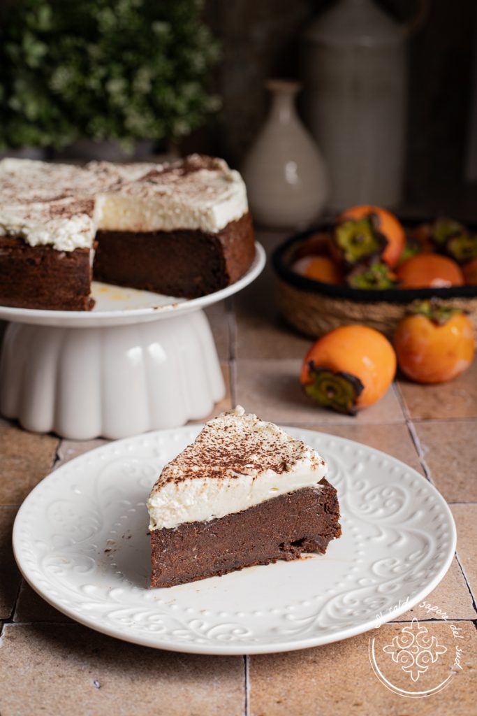 Vous vous souvenez de notre gâteau aux kakis et cacao allégé ? Eh bien, si celui-là vous a plu, je suis sûre que cette version plus riche et gourmande, avec un délicieux frosting au mascarpone et fromage à tartiner, vous fera craquer dès la première bouchée !  Un gâteau à la texture crémeuse et délicate, un dessert moelleux qui semble fondre en bouche, enrichi d’un nappage délicieux au mascarpone, à la crème et au fromage à tartiner. Un gâteau parfait comme dessert de fin de repas, mais aussi excellent pour le petit-déjeuner ou le goûter de l’après-midi. Une recette qui se réalise en mixant des kakis mûrs, qui en sont l’ingrédient principal, auxquels on ajoute quelques autres ingrédients qui lui donnent la texture crémeuse voulu et on décore avec un nappage tout simplement unique. Le gâteau kakis et chocolat est un dessert automnal facile, rapide à faire et très spectaculaire, qui unit l’arôme inimitable du chocolat noir à la douceur et la délicatesse du fruit le plus gourmand de l’automne, un dessert que vous devez absolument essayer et que vous aimerez immédiatement ! Allons en cuisine maintenant, préparons ensemble le gâteau aux kakis et chocolat, avec un frosting au mascarpone, et vous verrez quelle merveille ! J’ai réalisé ce gâteau simple et gourmand grâce à l’abondance des fruits de mon petit arbre et je pense que je le referai encore de nombreuses fois, ou jusqu’à ce que les kakis de mon arbre soient si nombreux qu’il faudra une recette pour utiliser les kakis mûrs. Avant d’aller en cuisine toutefois, comme toujours je vous rappelle que si vous voulez rester informés de mes recettes, vous pouvez suivre ma page Facebook et mon profil Instagram et que ici vous trouverez De nombreuses recettes pour de délicieux desserts d’automne et ici Recettes d’automne rapides.