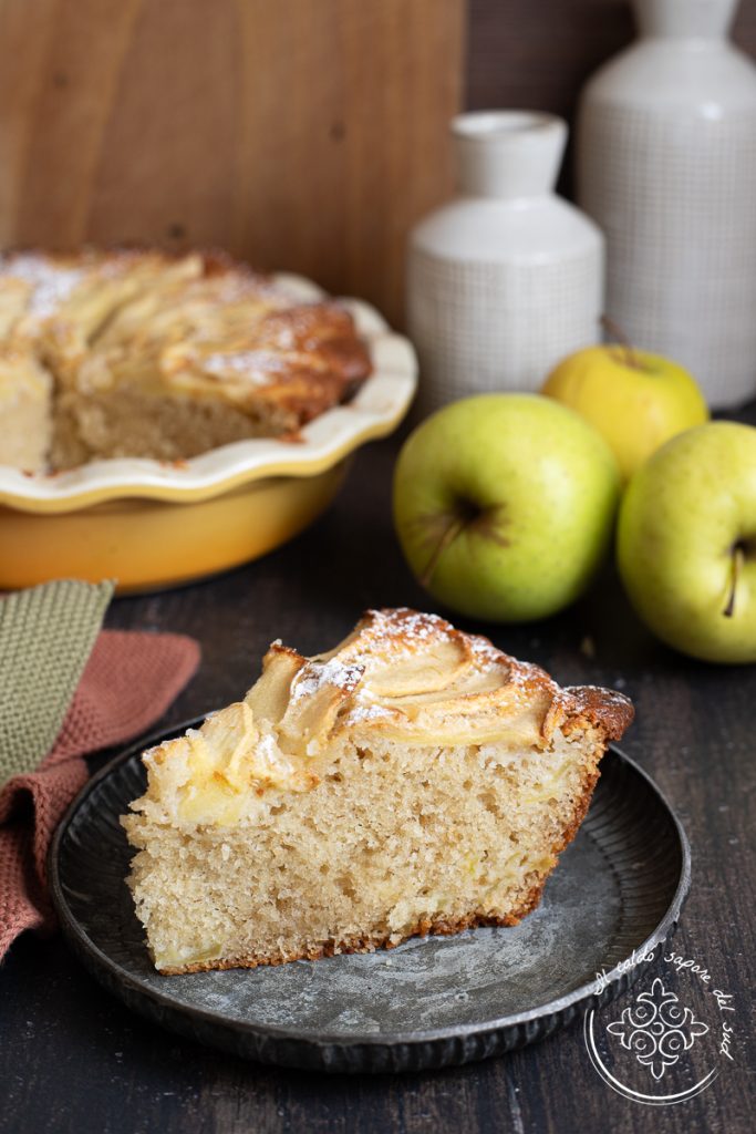 Gâteau aux pommes de grand-mère sans beurre, à l’huile d’olive, moelleux et parfumé. Les desserts aux pommes sont mes préférés, des classiques beignets aux pommes, au plus classique crumble aux pommes à la cannelle, sans parler de la célèbre apple pie américaine et du strudel aux pommes : on ne dit jamais non à un dessert aux pommes et surtout s’il s’agit d’un moelleux gâteau aux pommes de grand-mère ! Ma grand-mère était une vraie magicienne pour préparer les gâteaux aux fruits, et surtout ceux aux pommes, qu’elle réalisait les yeux fermés même quand elle n’avait pas de beurre. Elle le remplaçait souvent par de l’huile d’olive et faisait la même chose pour les biscuits, et je me souviens que le petit-déjeuner chez elle était toujours magique et spécial. Il y a quelques jours, j’ai trouvé dans le frigo deux pommes un peu frippées et je ne voulais pas les jeter : j’ai pensé à ma grand-mère et j’ai décidé de faire un gâteau aux pommes. Comme je n’avais pas de beurre, j’ai utilisé, comme elle l’aurait fait, de l’huile d’olive et j’ai ajouté du yaourt pour le rendre plus humide et moelleux : mon gâteau était délicieux, vraiment comme elle les faisait, tout moelleux et parfumé ! Prêts à filer en cuisine pour le réaliser ensemble ? Allons-y, mais avant de retrousser vos manches, je vous rappelle que si vous voulez rester informé(e) de toutes mes recettes, vous pouvez suivre ma page Facebook (ici) et mon profil Instagram (ici).