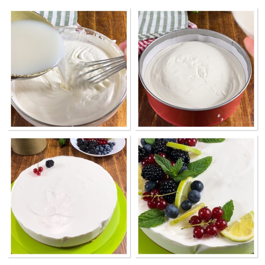 Gâteau froid au yaourt grec et crème, un gâteau froid au citron et yaourt léger et sans cuisson, parfait aussi par temps chaud, décoré de plein de fruits des bois. Le gâteau froid au yaourt grec est un dessert facile et rapide que vous pourrez faire en peu de temps et qui vous procurera beaucoup de satisfaction ! Le gâteau froid au yaourt et citron fait partie de ces desserts rapides sans cuisson et avec peu d’ingrédients qui séduisent tout le monde, presque une cheesecake sans cuisson, mais plus simple. Un dessert léger et enveloppant au goût frais et délicat, joli à voir et bon à déguster, qui avec sa crème gourmande à base de yaourt et de crème saura conquérir tous les palais ! Suivez-moi en cuisine maintenant, nous découvrirons ensemble comment réaliser le gâteau froid au yaourt comme celui de Cameo, en mieux, bien meilleur et je suis sûre que ce sera votre dessert d’été préféré !