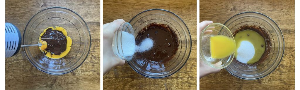 Faites fondre le chocolat au micro-ondes ou au bain-marie, faites fondre le beurre à part. Cassez les œufs en séparant les jaunes des blancs dans deux grands bols.