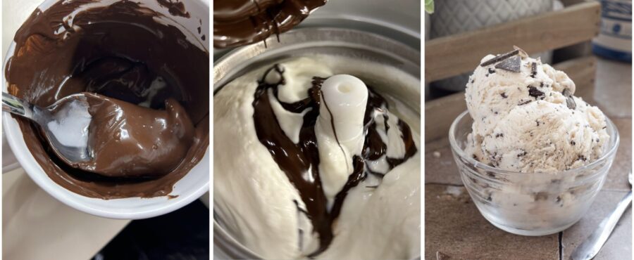 Si vous n’arrivez pas à ajouter le chocolat pendant le turbinage, versez-le lorsque la glace est déjà dans le bac et mélangez au fur et à mesure.