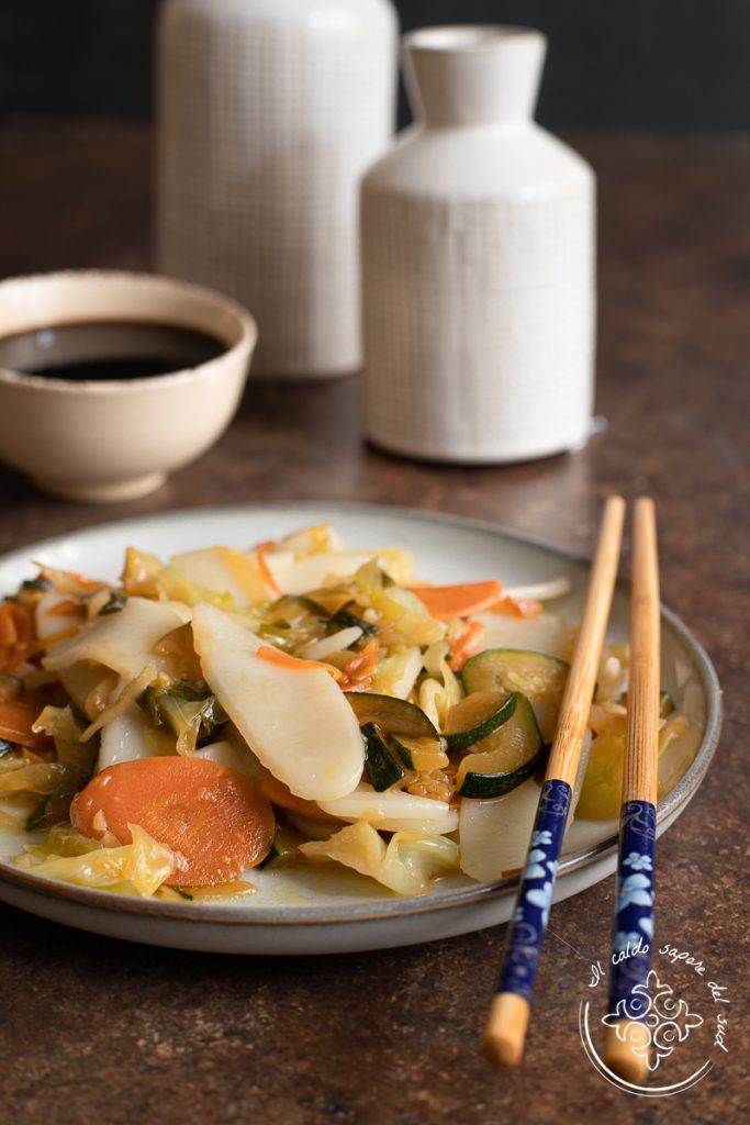 Une recette facile et polyvalente, parfaite pour un dîner rapide, qui marie la croustillante des légumes à la texture typique des gnocchis de riz chinois, pour un résultat savoureux et irrésistible.