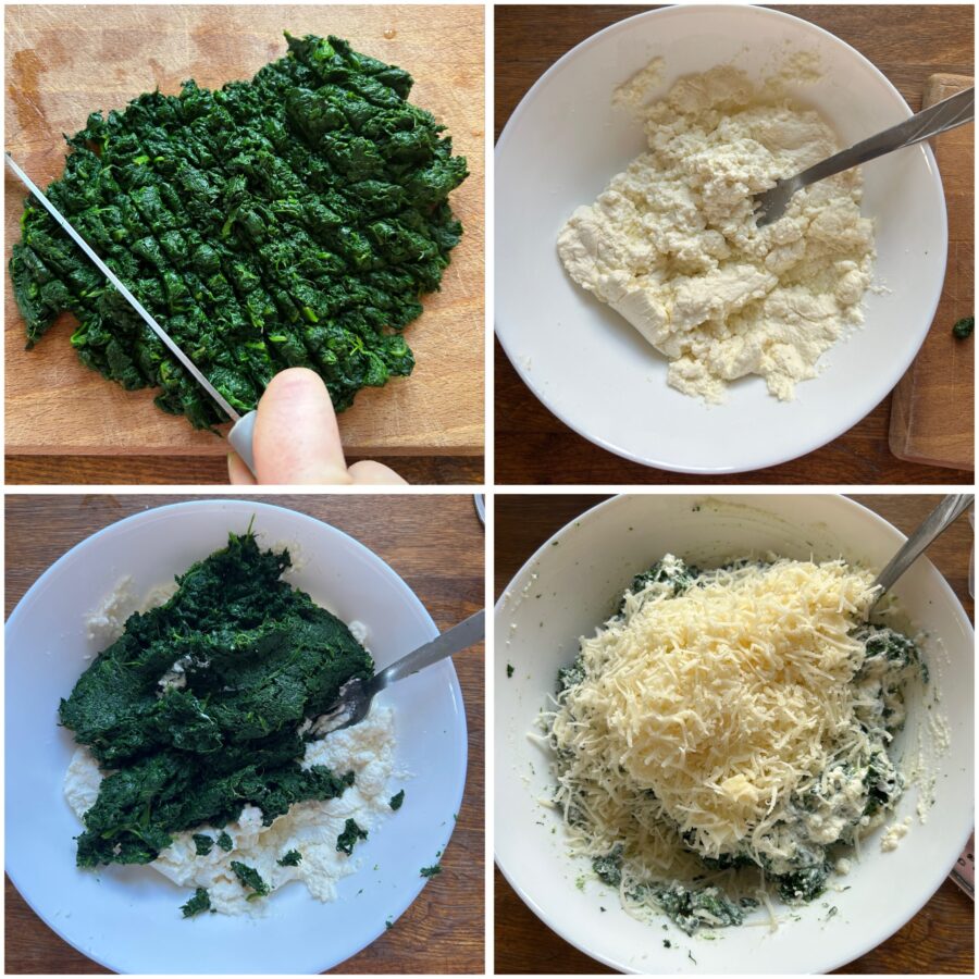 La difficulté ne réside pas dans les ingrédients, mais dans la consistance. Les épinards doivent être vraiment secs. La ricotta ne doit pas rendre d’eau. La préparation doit être souple mais stable, capable de rester compacte quand elle est plongée dans l’eau bouillante.
