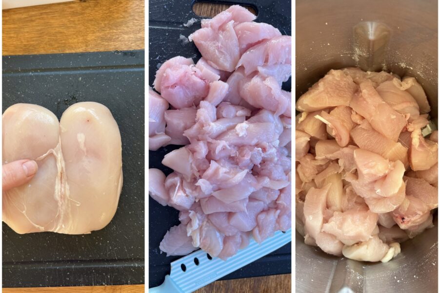 Pour cette recette, vous pouvez utiliser le blanc de poulet entier ou en tranches.