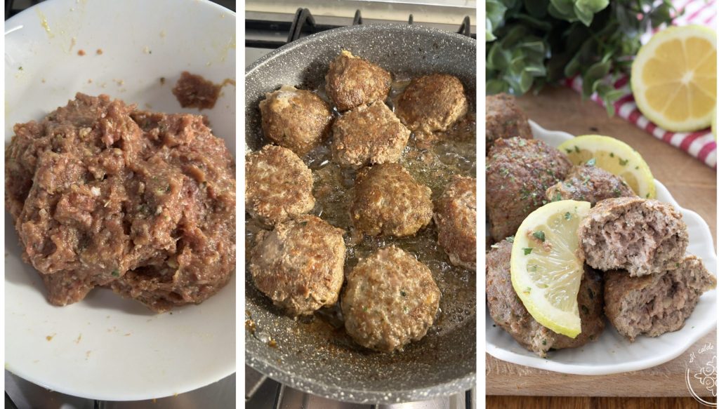 Mélangez jusqu’à obtenir une préparation homogène et maniable. Formez des boulettes avec les mains légèrement huilées, chauffez une poêle avec une quantité généreuse d’huile et commencez à frire les boulettes à feu moyen-vif, en les retournant une à deux fois. En 6-7 minutes elles devraient être cuites, mais vous ne pouvez pas vous tromper : dès que vous verrez sortir un peu de liquide des boulettes, attendez une minute puis sortez-les de la poêle. Déposez-les sur du papier absorbant pour enlever l’excès de graisse, dressez et dégustez.