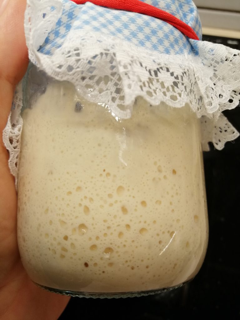 Si vous êtes prêts à commencer cette aventure, prenez un bocal transparent et versez-y 60 g de farine, de préférence type 0 (très nourrissante pour les levures), 50 g d’eau et une cuillère à café de miel. Mélangez très bien, couvrez d’un linge et laissez reposer 24-36 heures dans la partie la plus chaude de la maison.