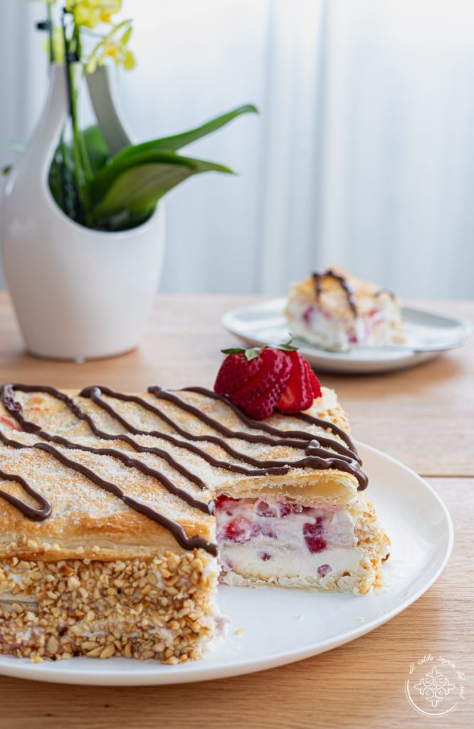 C’est une de ces préparations que je fais souvent, même quand j’ai des invités ou pour un déjeuner en famille, car elle se prépare sans difficulté et plaît toujours à tout le monde. Le millefeuille à la ricotta et aux fraises a le bon contraste entre la pâte croustillante et la crème douce, avec la touche fraîche des fruits.